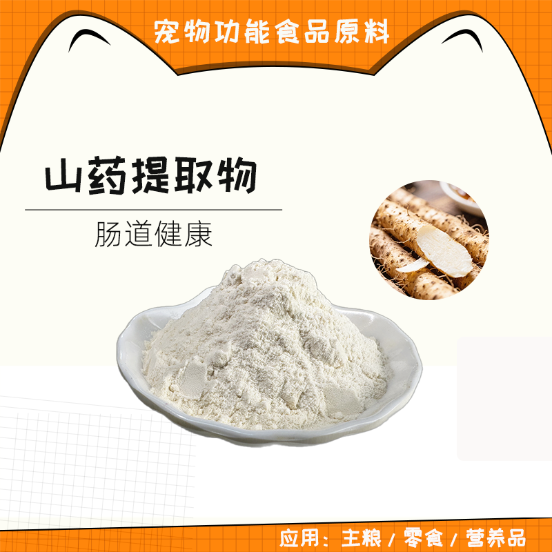 黏液蛋白可在宠物胃肠黏膜表面形成保护膜,减少刺激性成分(如高盐、高纤维)对肠道的损伤;山药多糖能调节肠道菌群平衡(显著提升双歧杆菌、乳酸菌占比,降低大肠杆菌数量),促进肠道蠕动。